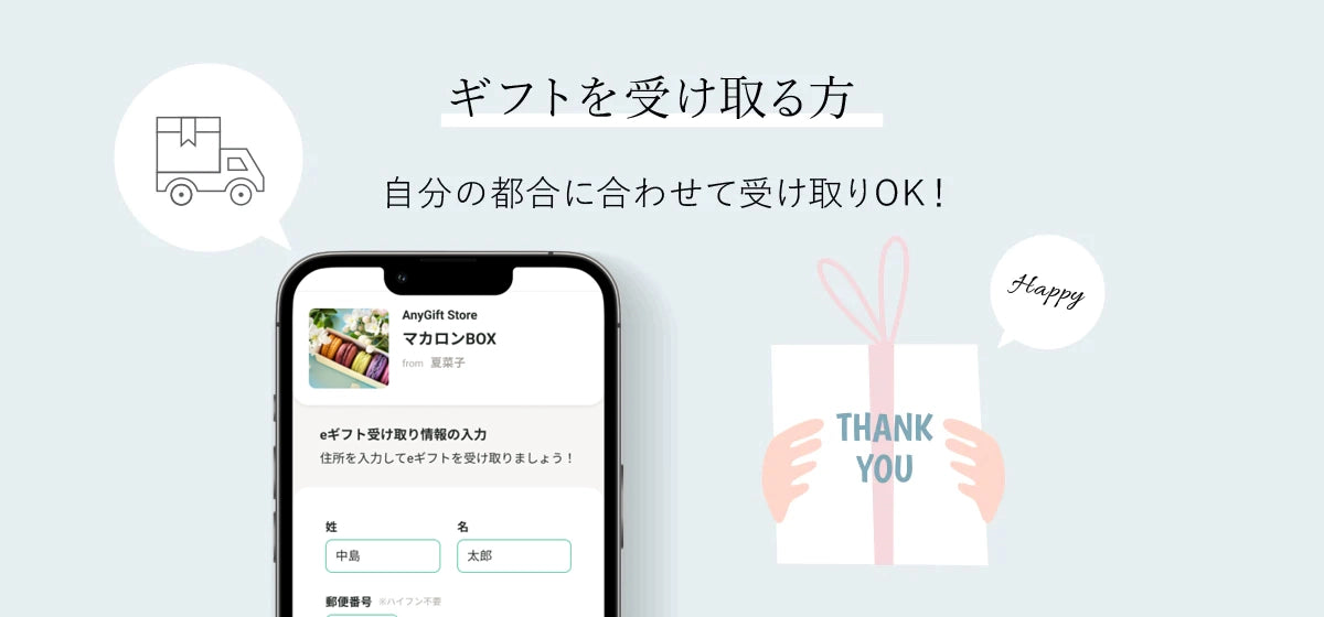 住所入力が完了すると、ギフトの発送手続きを行います。ギフトの到着をお待ちください。