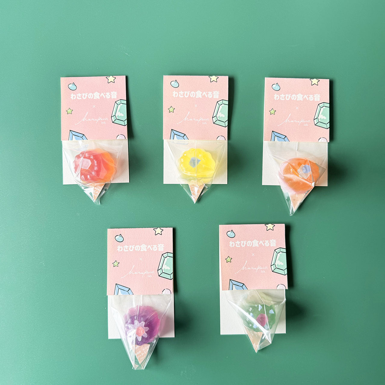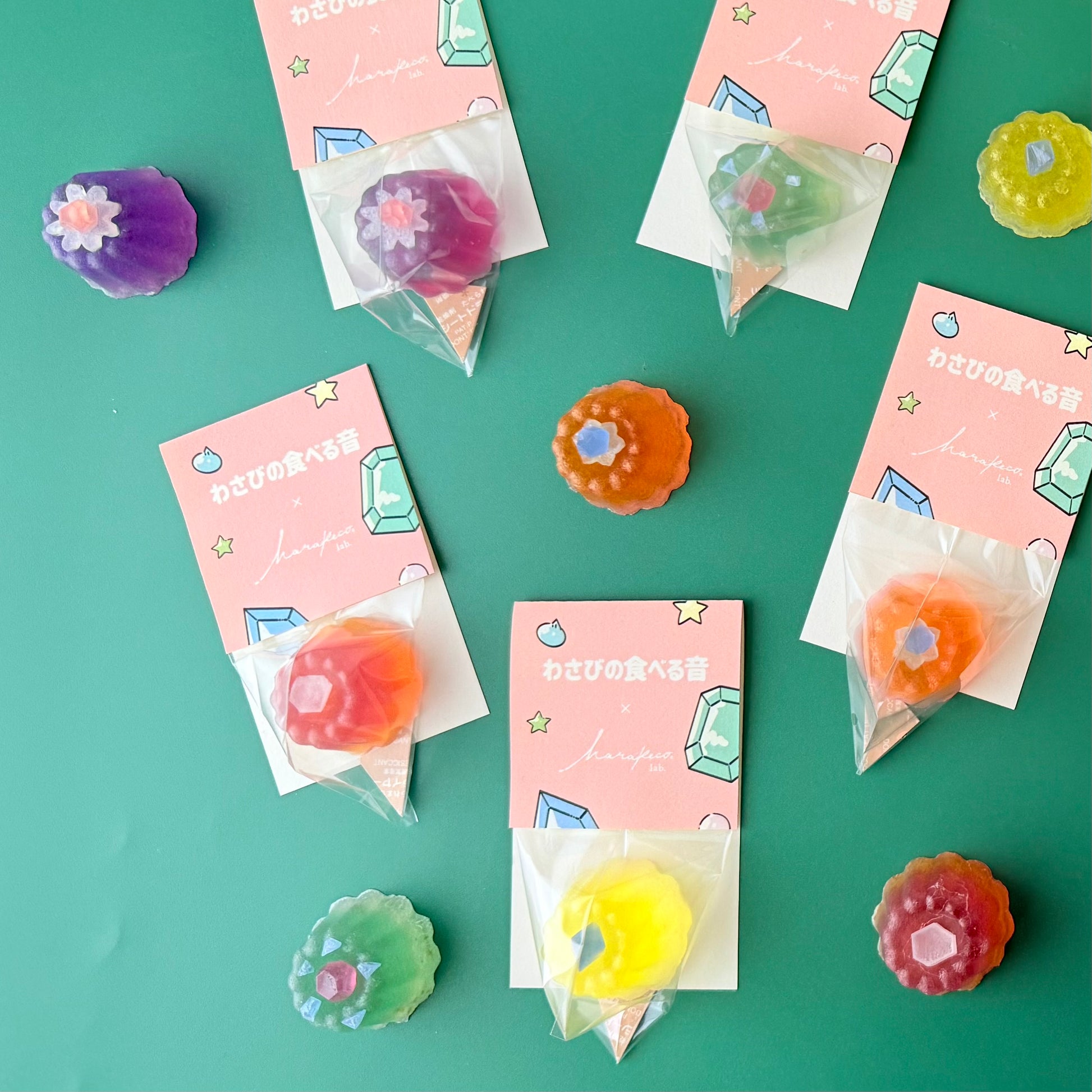 わさびの食べる音×ハラペコラボ レトロ喫茶な宝石ゼリーのこうぶつヲカシ(個包装)