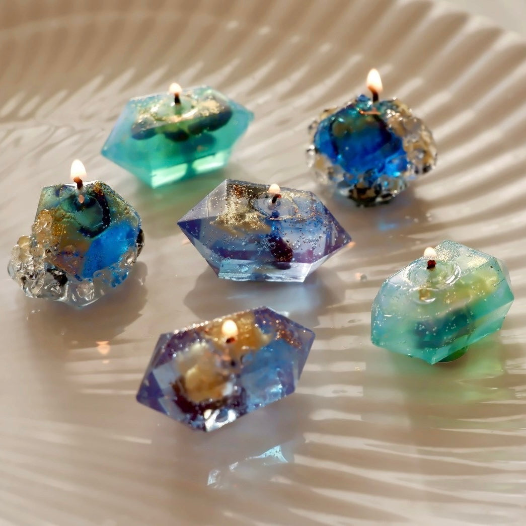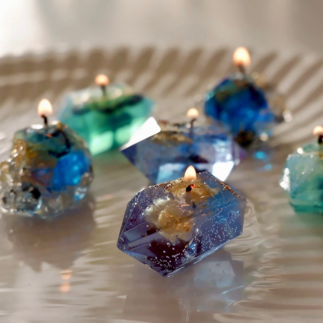 12月の誕生石【ラピスラズリ】【ターコイズ】【タンザナイト】をモチーフにした、神秘的な鉱物キャンドル。