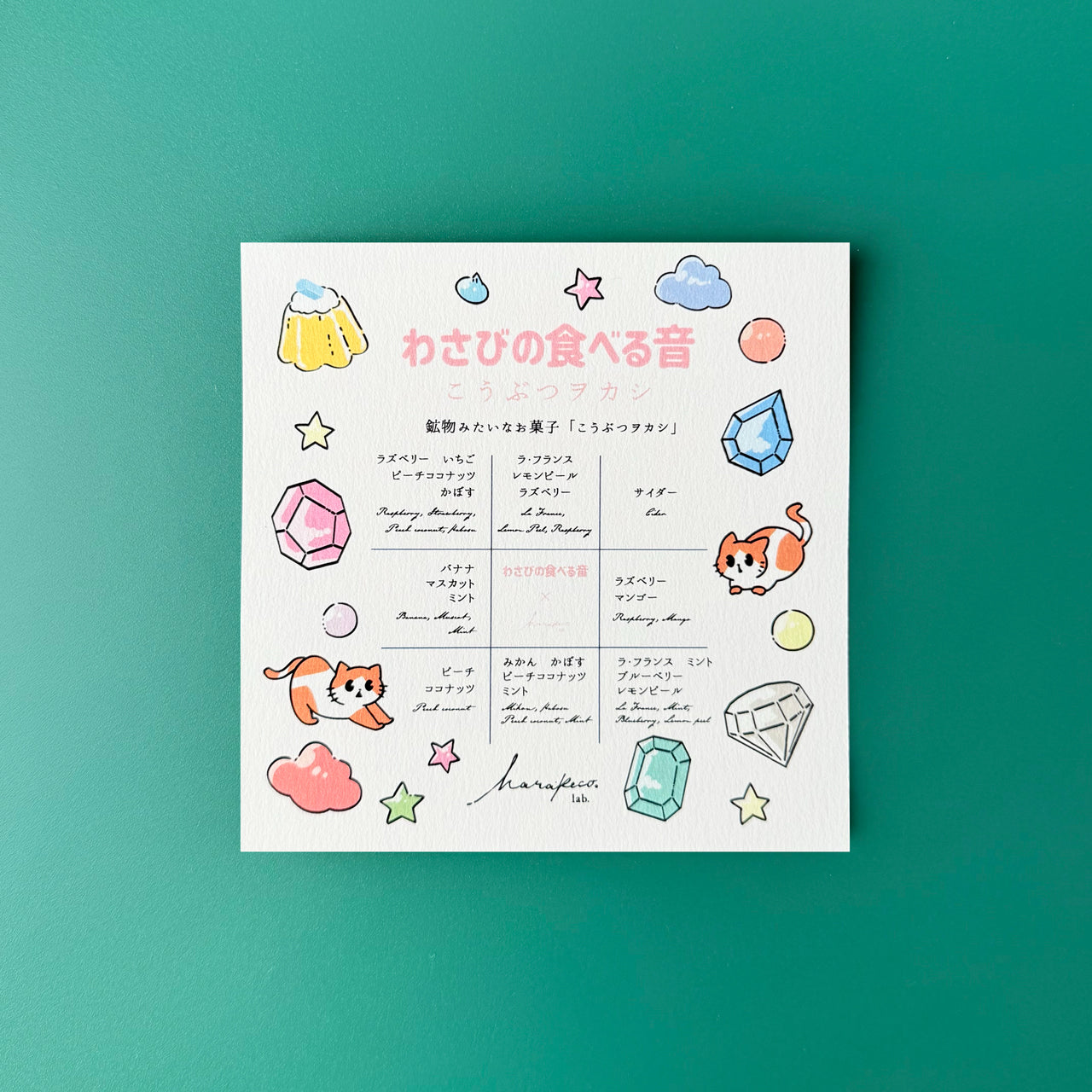![<予約> わさびの食べる音×ハラペコラボ レトロ喫茶な宝石ゼリーのこうぶつヲカシ〈缶入り〉 [期間限定]](http://harapecolab.com/cdn/shop/files/IMG__06_00_1280.jpg?v=1760487534&width=1445)
