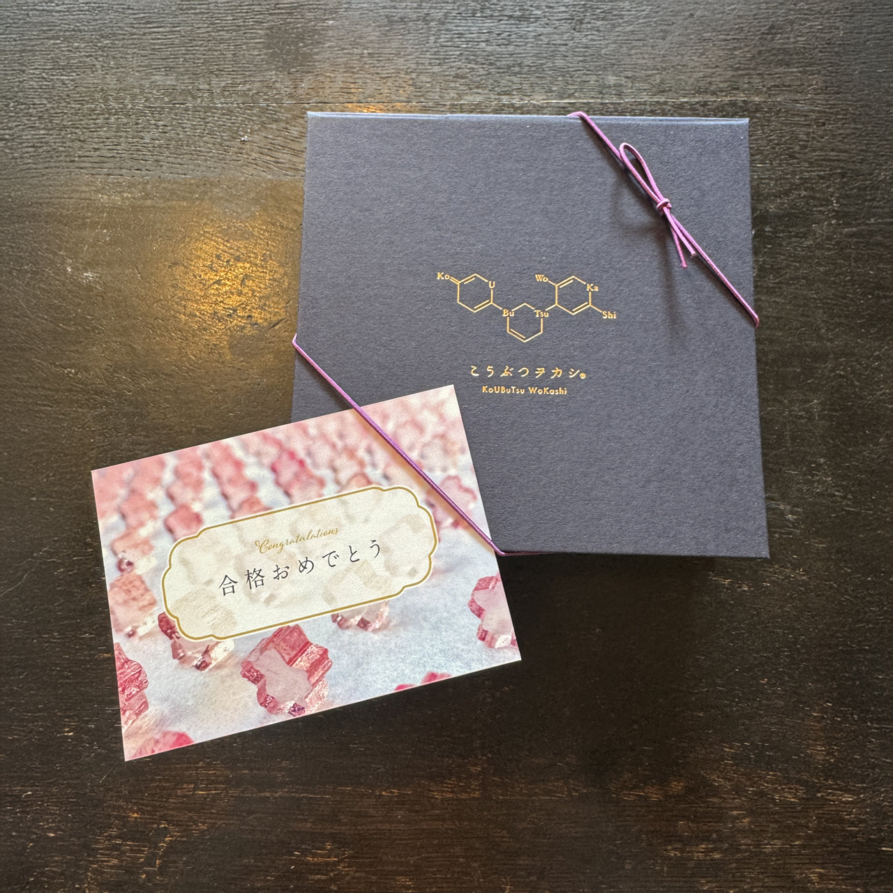 こうぶつヲカシとご一緒に。宝石形のメッセージカードです。