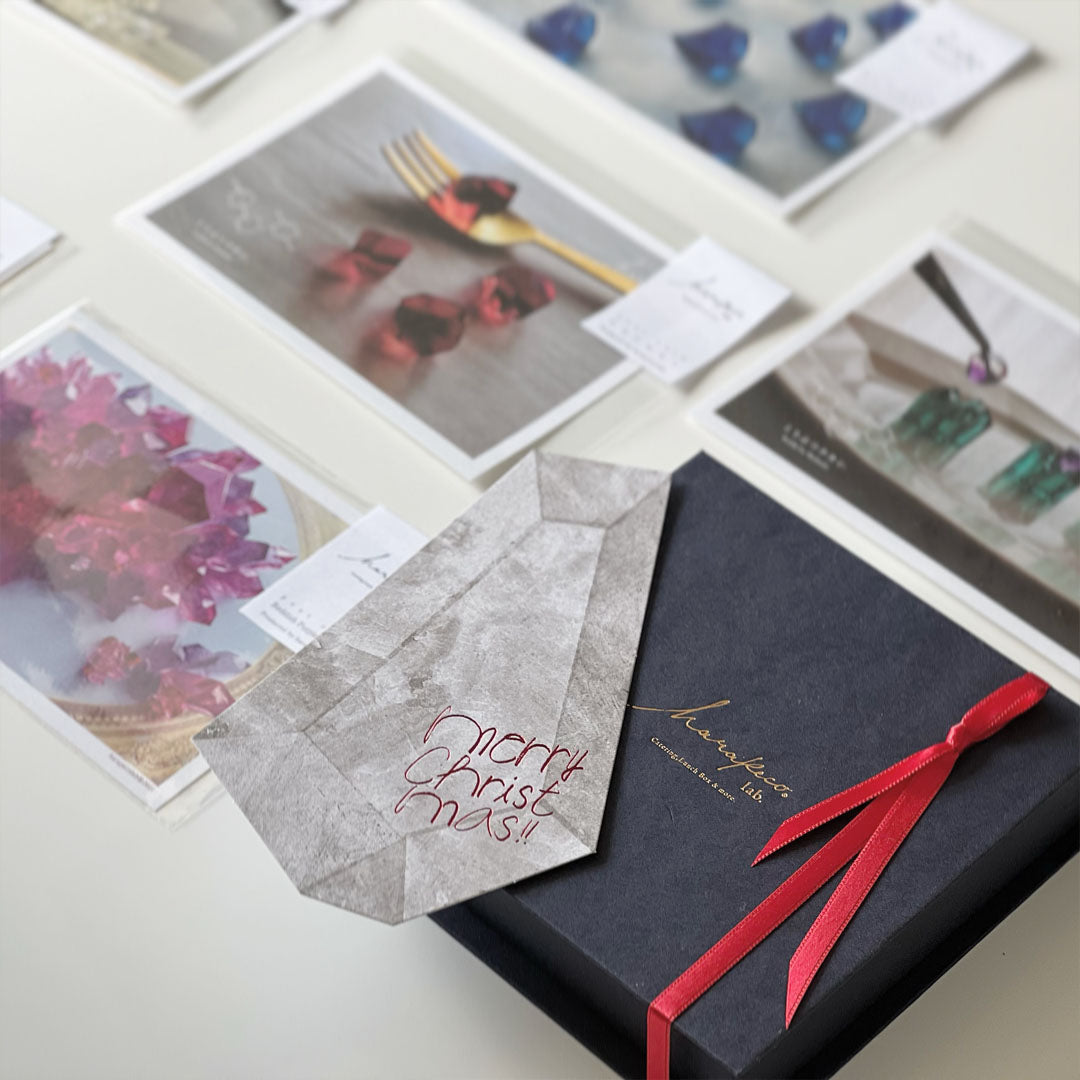 こうぶつヲカシとご一緒に。宝石形のメッセージカードです。